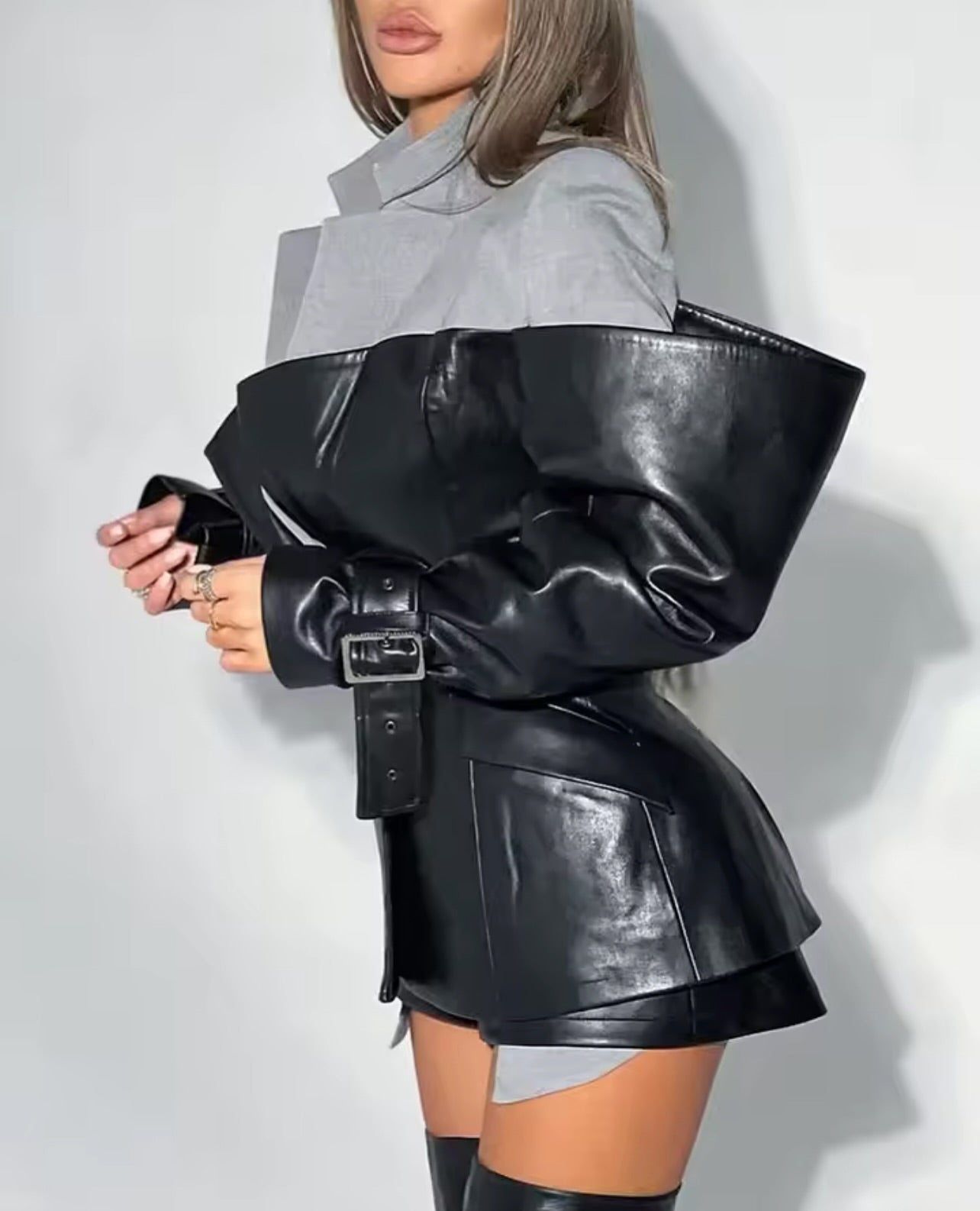 This cropped blazer cleverly blends soft cotton with refined leather, creating a unique mixed-style look. The cotton sections offer a comfortable and breathable feel, while the leather details add a touch of style and sophistication. Whether paired with formal or casual attire, this versatile jacket helps you effortlessly handle various occasions. The well-tailored cropped design flatters the figure, making it an indispensable wardrobe staple.